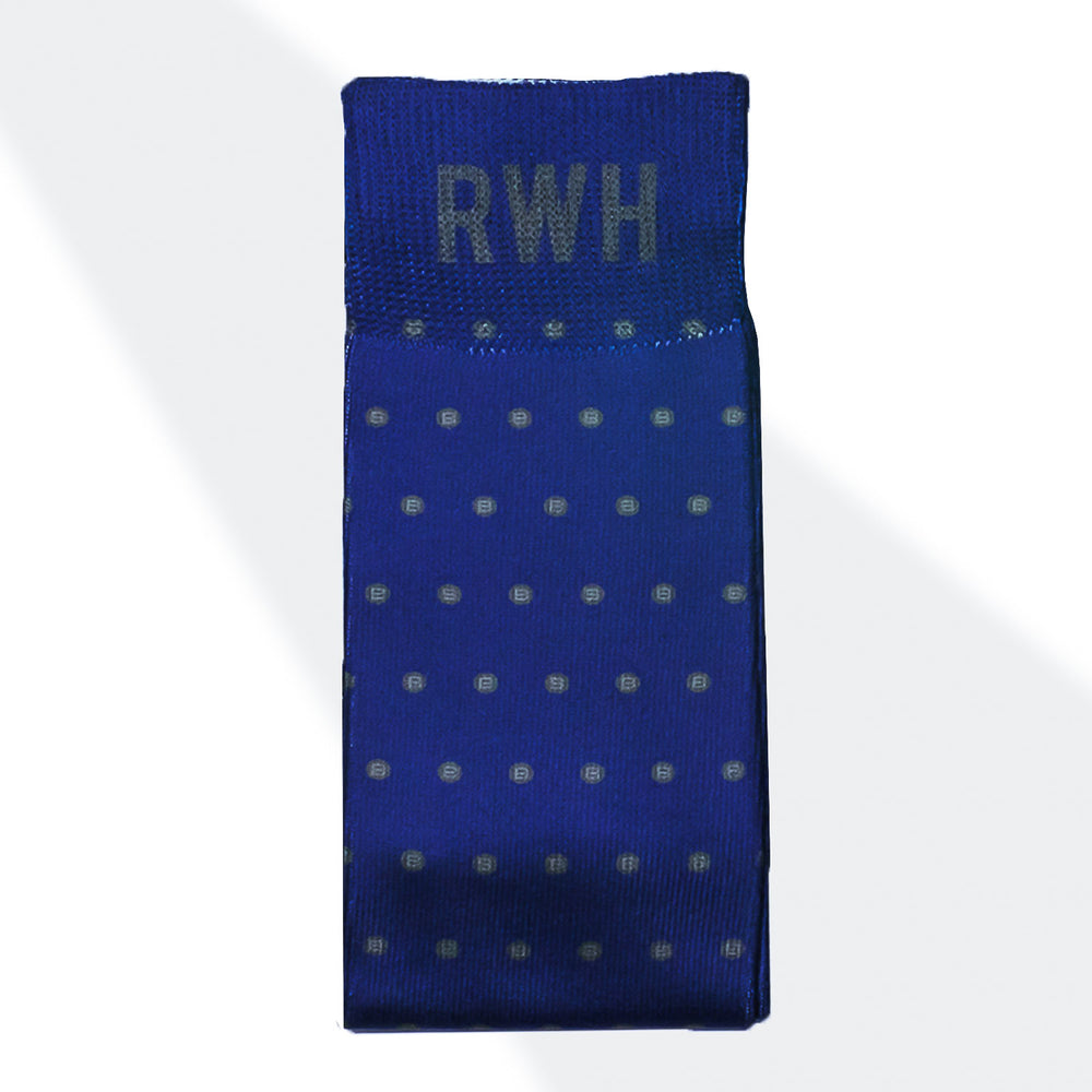 These crisp, royal blue socks—formerly known as "The Drivers"—now wear their purpose loud and clear: RWH, or Return With Honor.