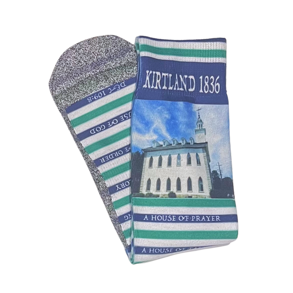 These classy blue, green, and white striped socks give a stylish shout-out to Doctrine and Covenants 109—the chapter where this iconic "House of God" all started. Slip them on, and you'll feel like you're walking through Church history (or at least walking really comfortably).